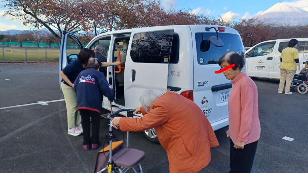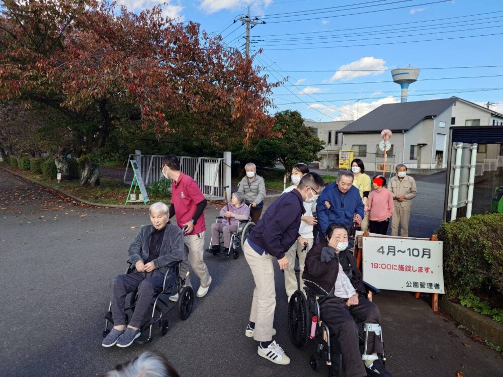 小規模多機能型居宅介護ハートフルホーム厚原では、11月10日に外出レクリエーションとして厚原スポーツ公園へ出かけました。お天気が心配されましたが、気温も穏やかで、紅葉の美しい木々を眺めながら散策を楽しむことができました。富士山もきれいに見え、皆さまからも大変喜んでいただけました。