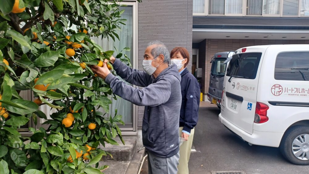 普段はご自宅で過ごすことが多いU様でしたが、たくさんのみかんを収穫され、とても楽しそうにされていました。