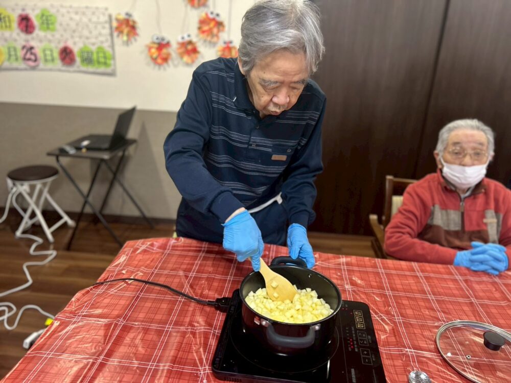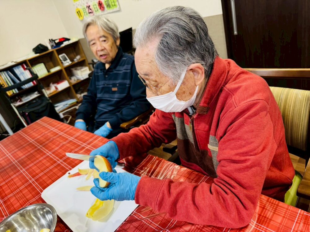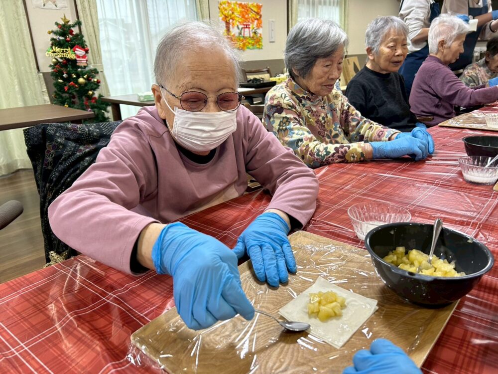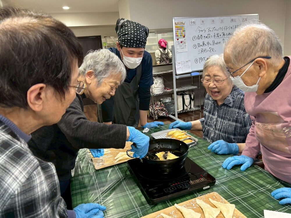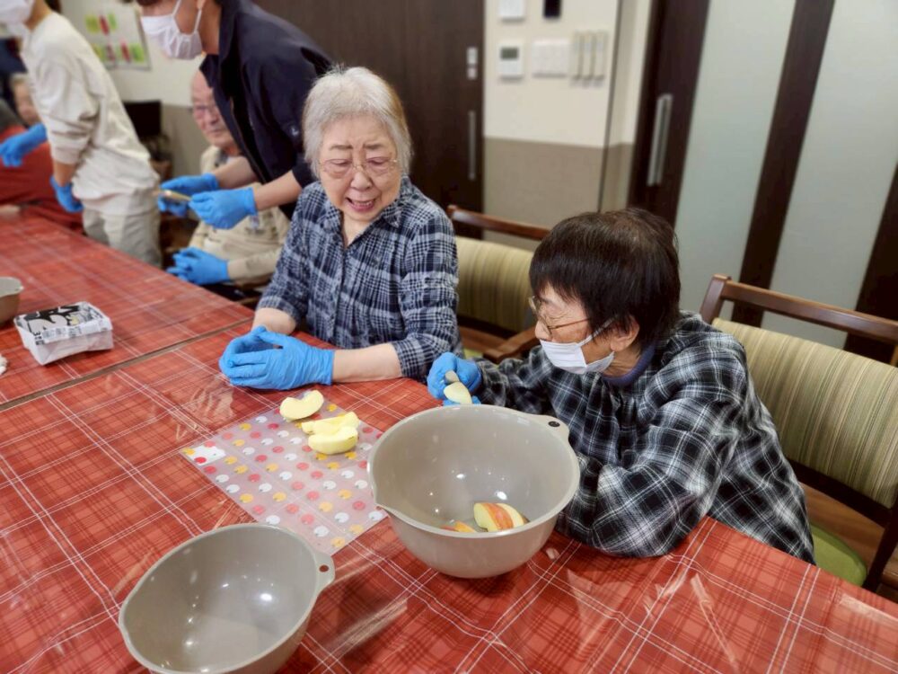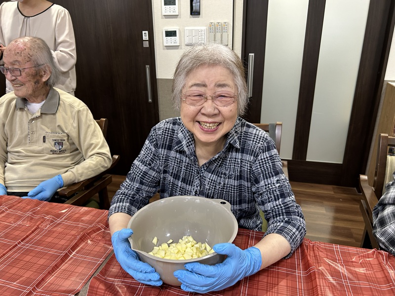 今回のアップルパイ作りは、午前と午後に工程を分け、1日かけて行いました。和やかで温かい時間だったことが印象に残っています。焼き上がったパイを囲んで「いい匂い!」と嬉しそうに話す皆様の姿に、私自身も一緒に楽しませていただきました。これからも、皆様と素敵な時間を共有できるような企画を用意して参ります。