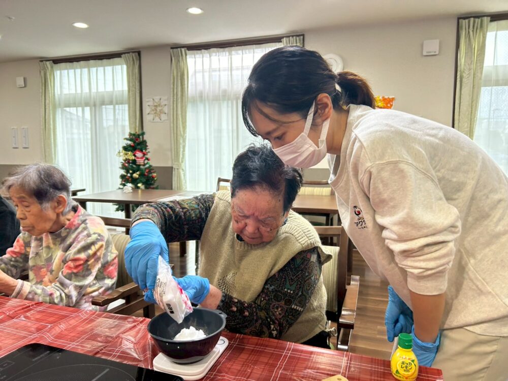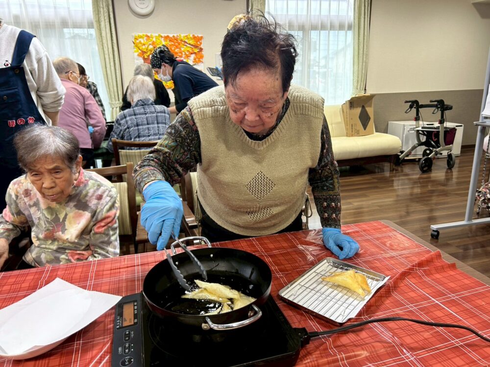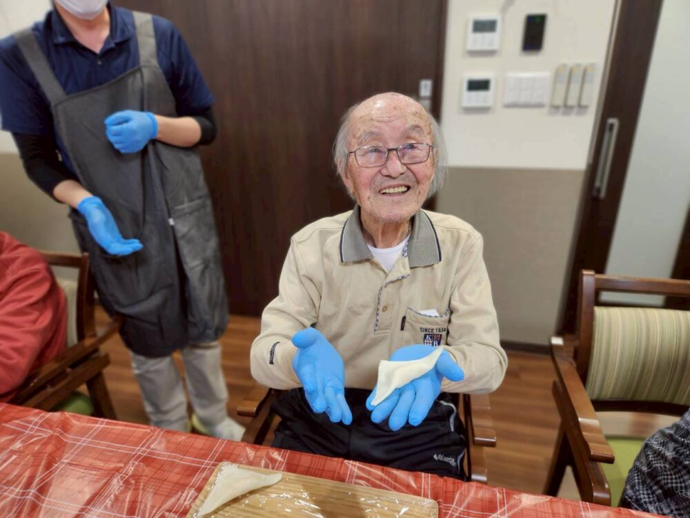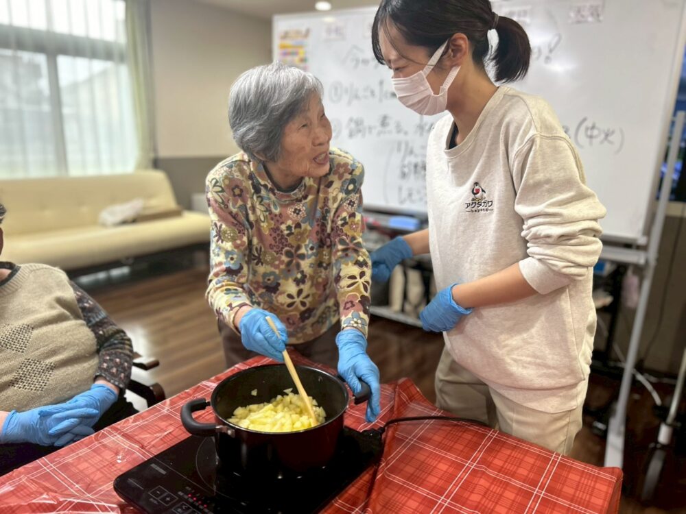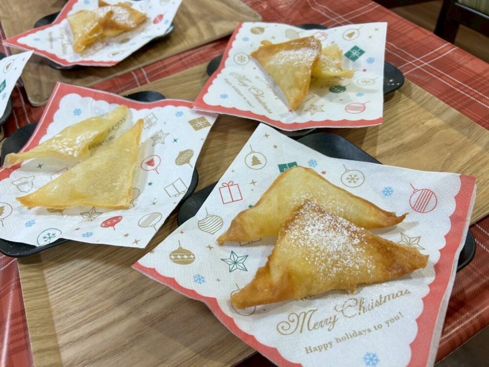 今回のアップルパイ作りは、午前と午後に工程を分け、1日かけて行いました。和やかで温かい時間だったことが印象に残っています。焼き上がったパイを囲んで「いい匂い!」と嬉しそうに話す皆様の姿に、私自身も一緒に楽しませていただきました。これからも、皆様と素敵な時間を共有できるような企画を用意して参ります。