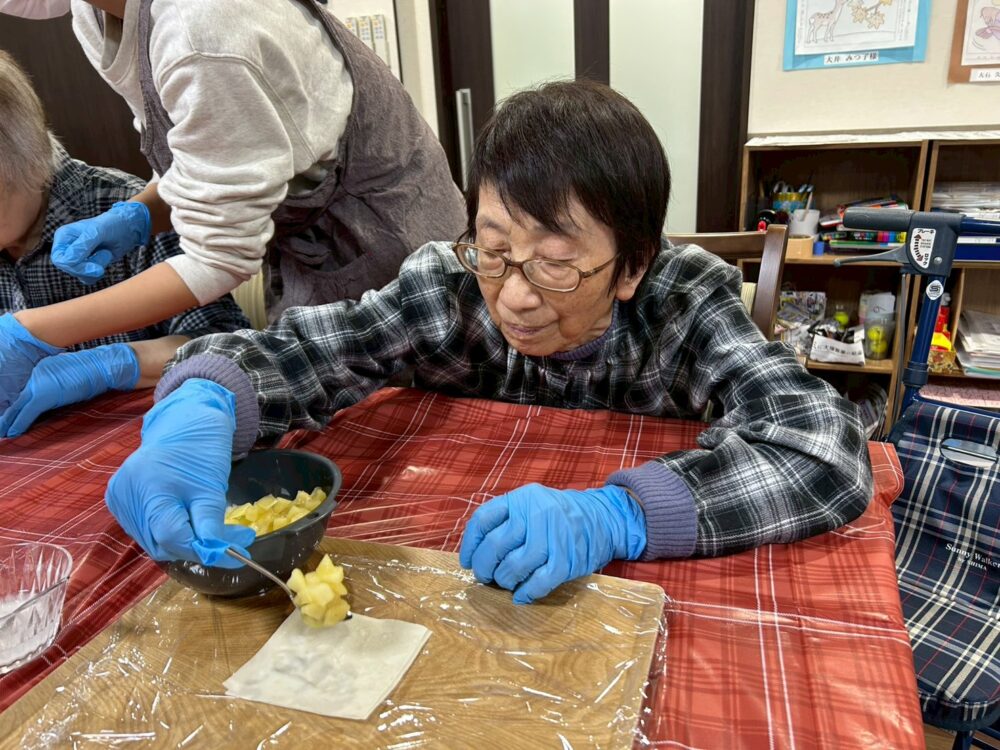 藤枝青葉町小規模多機能 ~おやつレク~「三角アップルパイを作ろう」