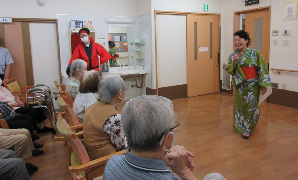 今回の敬老の日のお祝いでは、職員からの催し物を「敬老の日のプレゼント」として開催いたしました。お客様にとって馴染みの深い歌や演目に触れていただく中で、懐かしさを感じられ、笑顔で楽しまれるご様子が多く見られました。私どもも、お客様に喜んでいただけたのではないかと大変嬉しく思っております。今後も、お客様がより一層楽しく、心豊かにお過ごしいただける環境づくりに努めてまいります。