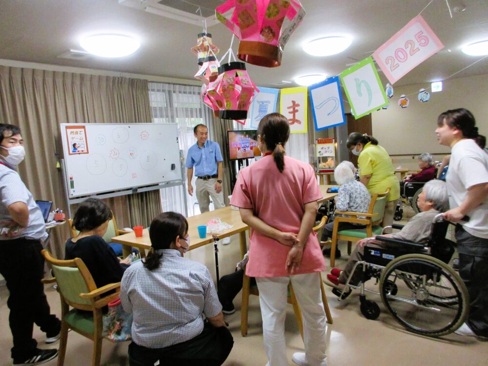 当日ハプニングがあり、慌ただしさもありの夏祭りレクリエーションでしたが、職員全員の協力のおかげで無事に実施することができました。新設された当社デイサービスのお客様も招待することができ、当日に退院してこられたお客様にも楽しんでいただくことができました。今後も、お客様と職員が一緒に作り上げるイベントを企画していければと思います。