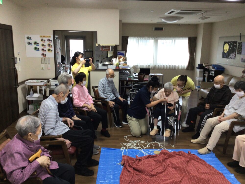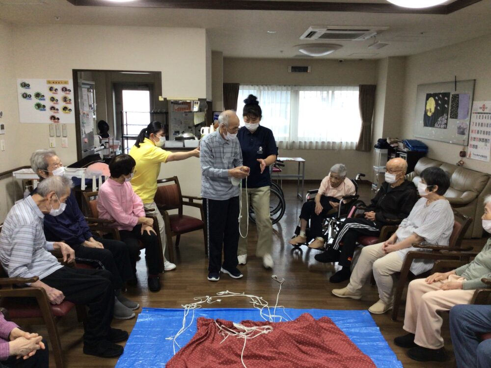 富士市にあるグループホーム加島では、秋のレクリエーションとして「芋掘り大会」を開催しました。といっても実際に畑でお芋を掘るのではなく、ゲーム形式で楽しむオリジナルの企画です。