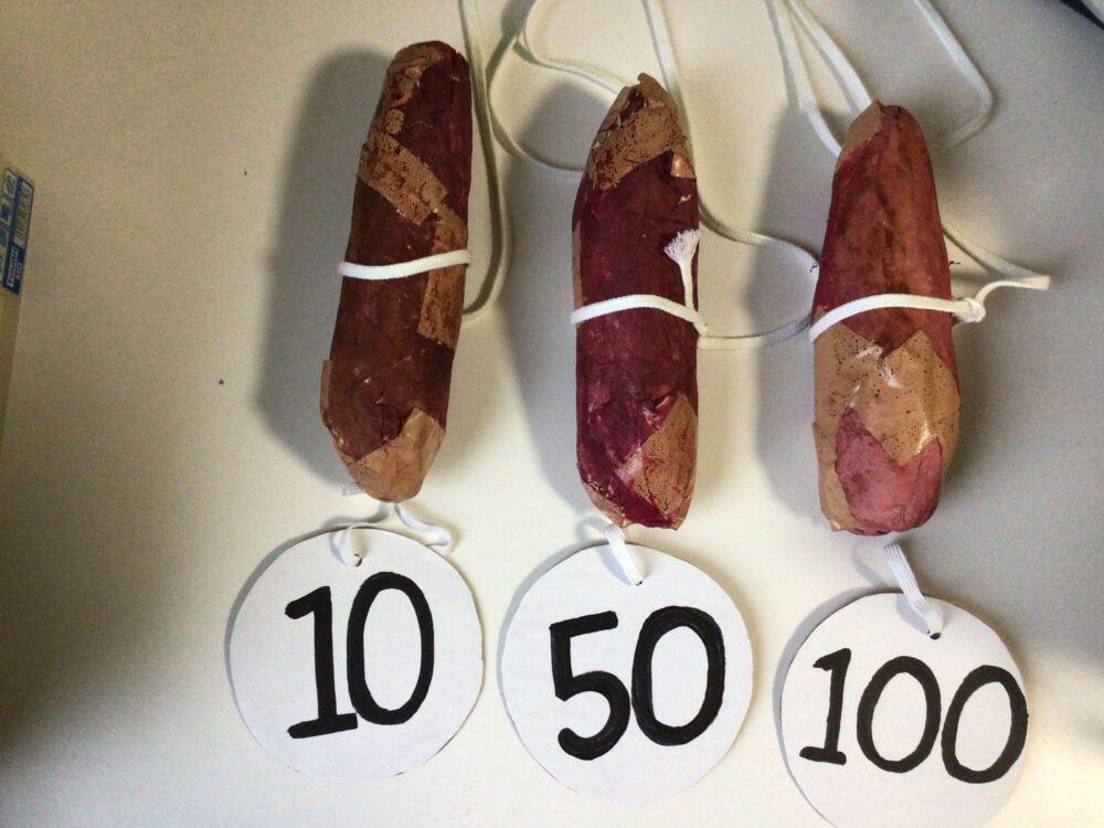 紐のついたさつまいもには点数が割り振られており、どの紐を選ぶかが勝敗を左右しました。