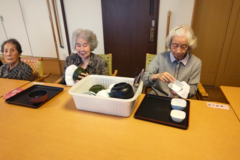 起床され、朝食を召し上がると皆様、食器拭きなどの家事を手伝ってくださります。