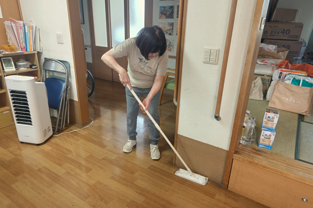 床の掃き掃除も深く腰を入れて丹念に手伝ってくださります。