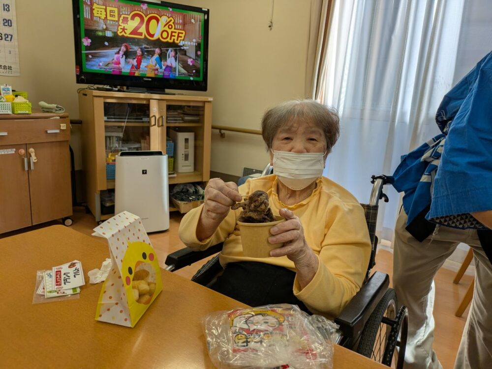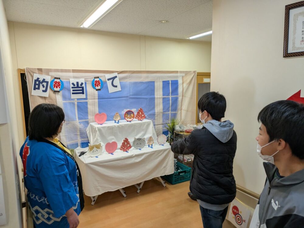 館内に射的コーナーを作って、デイサービスの生徒さんたちにも楽しんでもらいました。お客様も順番にご案内し、好きな景品を選んでいただきました。生徒さんたちにはお菓子やカップ麺などが好評だったようです。