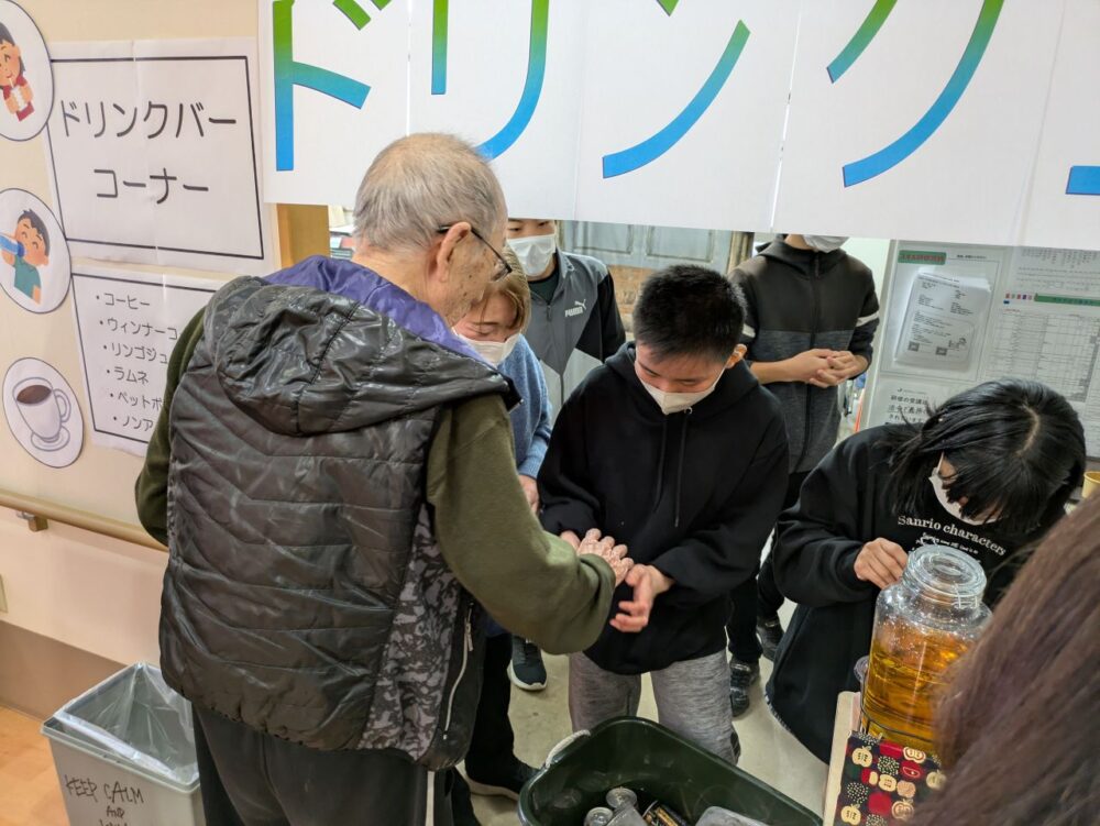 生徒さんたちが運営してくれたドリンクコーナーでは、お客様が注文された品を丁寧に対応してくださっていました。引率の先生の見守りのもと初めは緊張した面持ちでしたが、徐々に慣れてきて交流ができていました。購入されたお客様は、近頃のノンアルコールの進化に驚かれながら外で飲むとさらに美味しさが増すと、とても楽しまれていました。