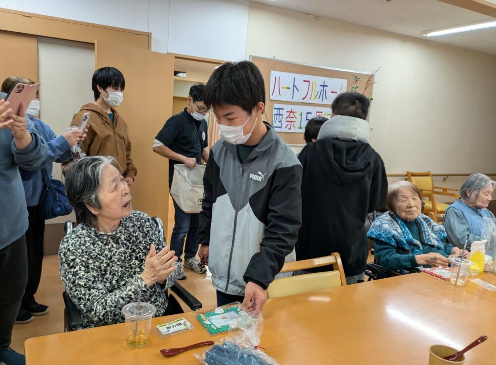 室内で美味しいものを召し上がっていただき、最後には生徒さんたちからの真心こもったプレゼントをいただきました。手作りのとても素敵なフォトフレームです。心温まる交流ができ、感謝の想いでいっぱいです。