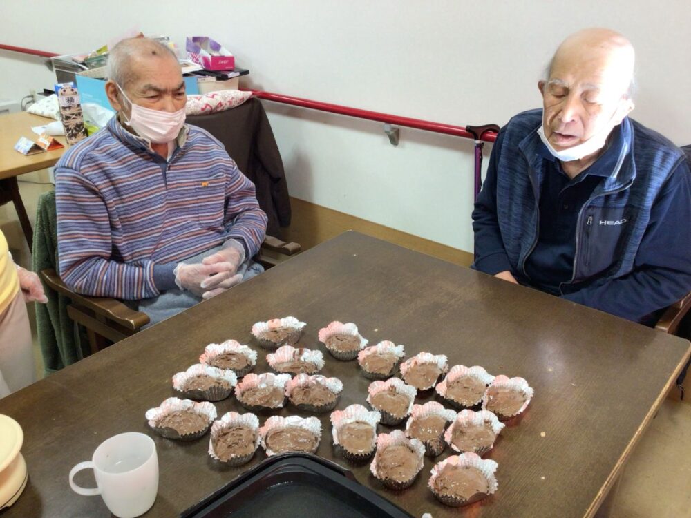 小鹿公園前小規模多機能では、バレンタインデーにあわせ手作りチョコ菓子を2種類作りおやつに召し上がって頂きました。その様子をご紹介いたします。