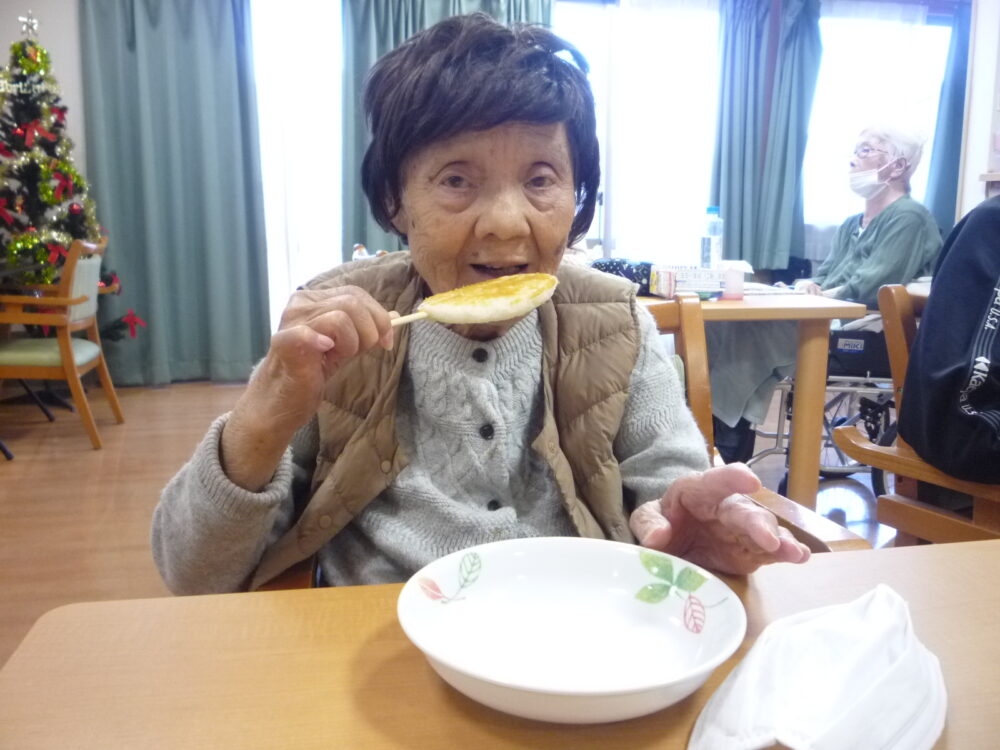 有東坂グループホームでは12月のおやつレクとして五平餅を作って頂きました。お客様によって「懐かしいねぇ」という声も「初めて食べるよ」という声も上がっており皆様の反応がこんなにもバラバラなことは初めてでした。