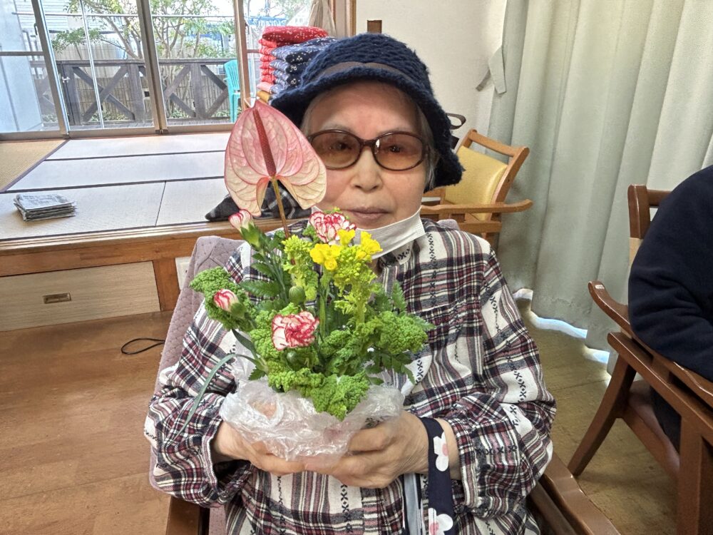 1月は、護国神社に初詣に行きました。今年も元気に過ごせるようにお願いをしてきました。また、日本平で、蝋梅・梅の花を見に行きました。天気も良く梅のピンク色がとても映えていました。富士山もきれいに見え「やっぱり冬の富士山はキレイだね!」などとお話も弾みました。