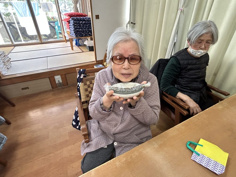 皆さん「やったことないよ!」と仰っていましたが、とても手際よく作ってくださいました。職員も一緒に作りましたが、上手にできませんでした・・・(笑)